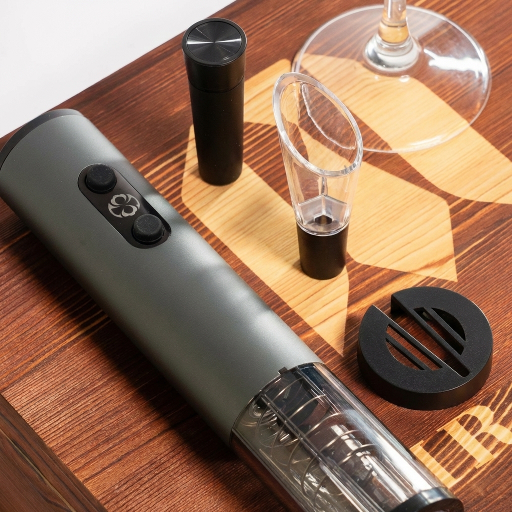• Tirbușon electric — deschide sticla rapid și fără efort.