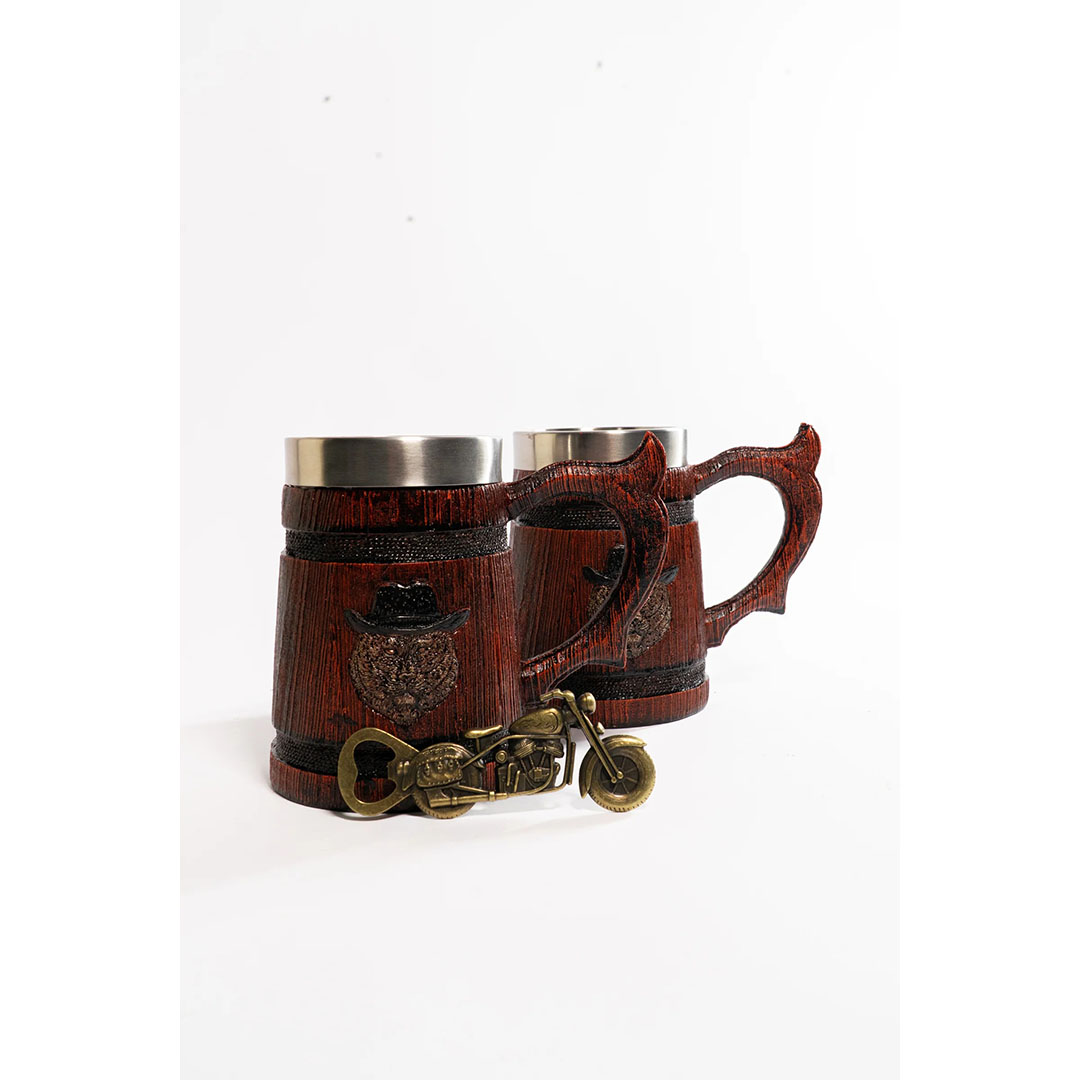 • Două halbe cu interior de oțel alimentar - nu afectează gustul, se păstrează bine la rece, ușor de curățat.