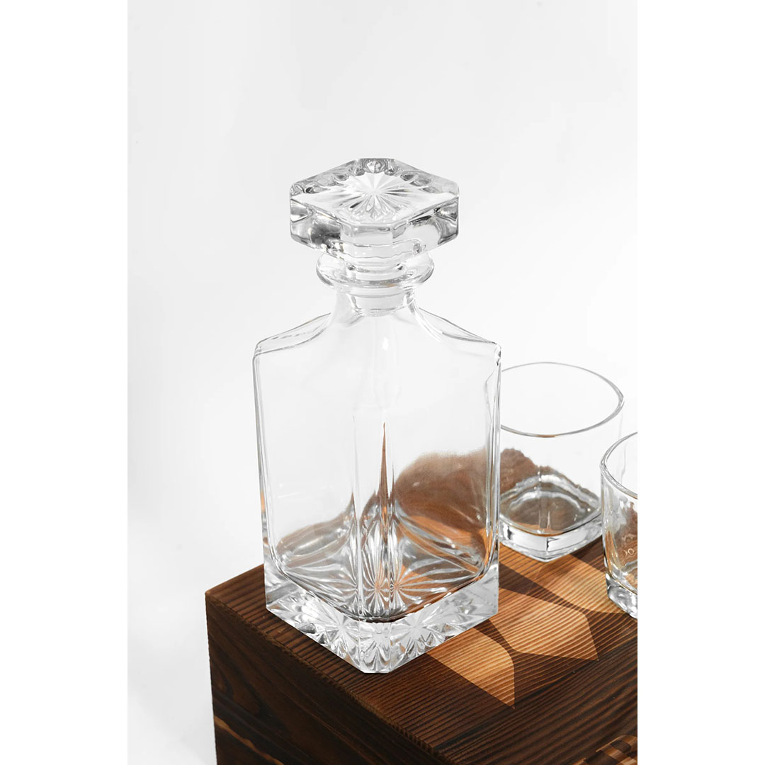 Inclus:• Decantor – prezentare elegantă a unei băuturi.• 2 pahare – pentru o conversație amicală sau un ritual personal.